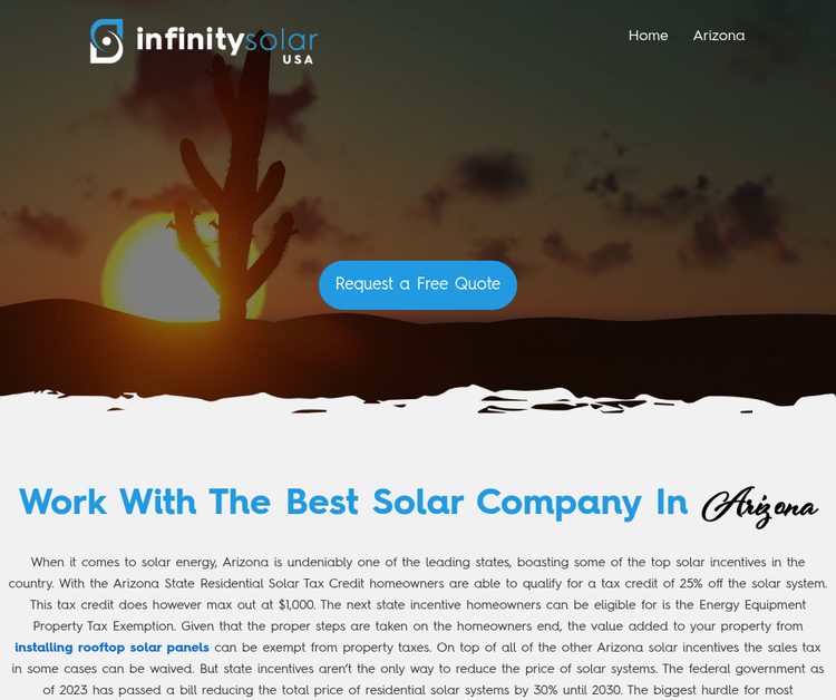 Arizona-based solar energy provider helping homeowners maximize savings through state and federal incentives, including tax credits, property tax exemptions, and sales tax waivers to make the switch to clean energy affordable.